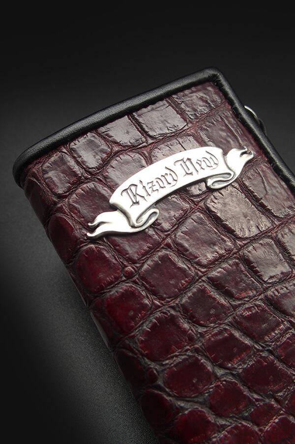 外装は超高級マテリアル、スモールクロコダイル(ポロサス)を採用、カラーはヴィンテージワイン。SILVERはRizardHeadのリボンプレートを配置。吊り下げてご使用できるようにストラップ+カラピナを装着しました。
