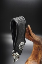 マテリアルは、ブルーシャーク(ヨシキリザメ)を採用。鮫は他の動物と違い養殖することが難しいので革素材としての希少価値が高く、特にヨシキリザメの鮫革はサイズも小さく大変高価なマテリアルともいえます。