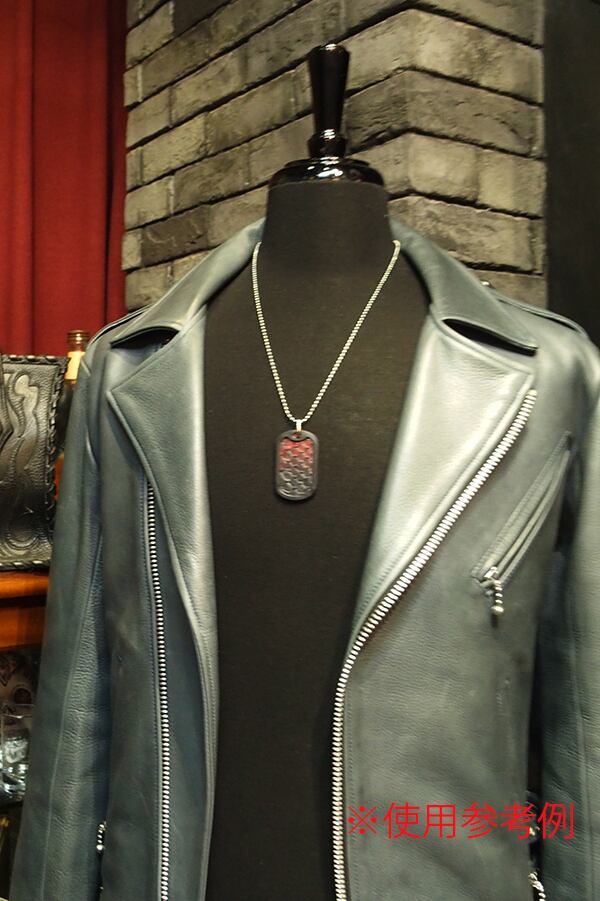 フロントはレザー、バックがアルミニウム製のドッグタグネックレスです。